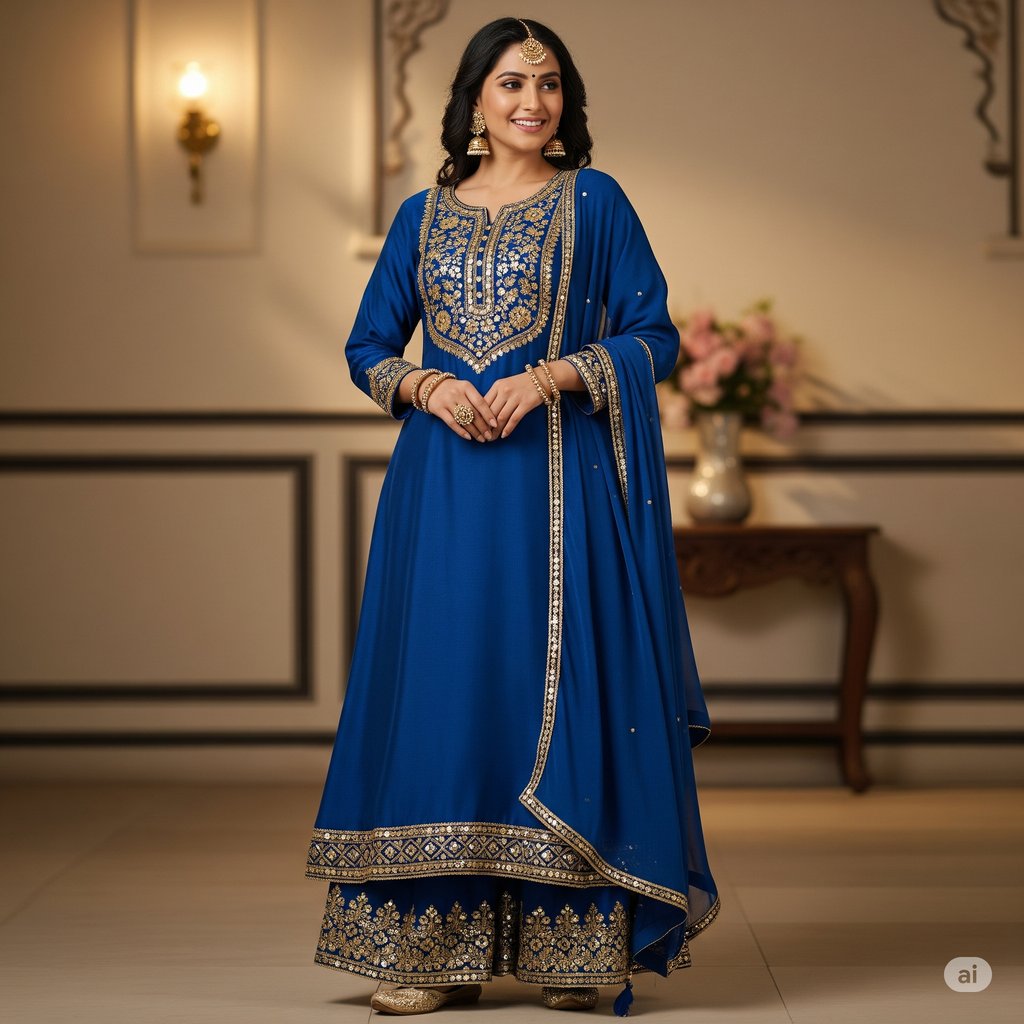 A palazzo suit is a three-piece outfit consisting of a kurta (tunic), palazzo pants (wide-legged trousers), and a dupatta (scarf). The defining feature is the palazzo pant—a flared, loose-fitting trouser that offers unparalleled comfort and a graceful, flowing look. Unlike traditional salwar or churidars, palazzos don't cling to the leg, making them ideal for any body type and perfect for all-day wear.